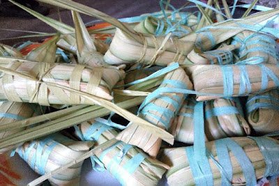 Kemudian siapkan daun janur dan pisang yang telah dikupas atau kacang sebagai isiannya. Untuk pisang, cocok nya pisang raja atau pisang gepok. Daun Janur harganya tidak mahal dan bisa didapatkan di pasar tradisional. Sebelum digunakan bersihkan terlebih dahulu. Rangkailah daun janur. Merangkainya ini cukup ribet.
