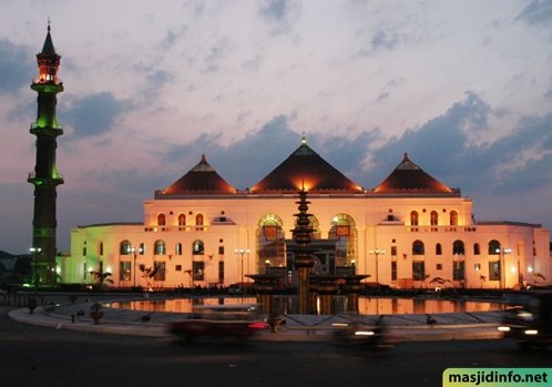 Masjid Agung Palembang, didepannya adalah bundaran air mancur, titik nol kota Palembang