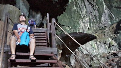 Lepas dari sini kami menyusuri sungai lagi kurang lebih 20 menit dan sampai di lanting untuk masuk kedalam hutan. Gary mendahului masuk menyusuri rute yang ada, terdapat beberapa penunjuk dari kayu, beberapa pohon besar tertulis nama dan informasi sehingga mempermudah petualang mendapat informasi. 30 menit berjalan kami mulai menapaki tangga menuju mulut gua. Melewati sebuah pintu yang akan akan ditutup setiap pukul 5 sore. Jalan masuknya sudah tersusun seperti jembatan dengan pinggiran yang dipasang tali. Sengaja dibuat jauh dari dinding gua agar tidak ada tangan jahil yang menyentuh. Bagian gua termasuk stalagtit dan stalagmit bisa rusak terkena keringat manusia.
