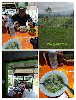 Soal rasa baksonya apakah enak, biasa-biasa saja alias standar ataupun kurang enak itu perkara kesekian. Kalau ternyata enak, anggap saja itu bonus dan wajib direkomendasikan ke publik. Kebetulan bakso buatan Kang Toto ini memang rasanya enak, ditambah pemandangan alam di depan warungnya menjadi nilai plus tersendiri.