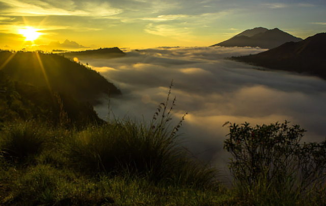 daerah Kintamani adalah saat matahari terbit ( sunrice ), kabut tipis akan menyelimuti