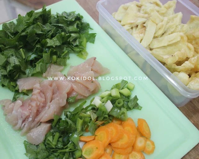 Siapkan wajan untuk memasak bumbu yah. Tumis bawang putih dan kemiri halus hingga harum, masukkan wortel, sayuran, dan ayam. Tambahkan air 1/2 gelas, tutup wajan sekitar 5 menit agar bahan pelengkap matang.