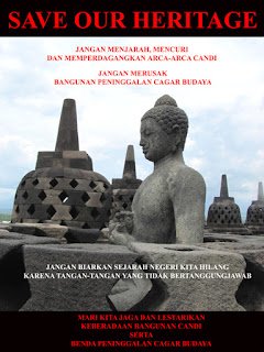 Ya maka dari itu saya membuat poster yang bertemakan “Save Our Heritage” dengan segala keterbatasan kemampuan yang saya miliki untuk mengotak-atik Corel dan Photoshop serta stok foto yang saya miliki, akhirnya jadilah poster ini 😀