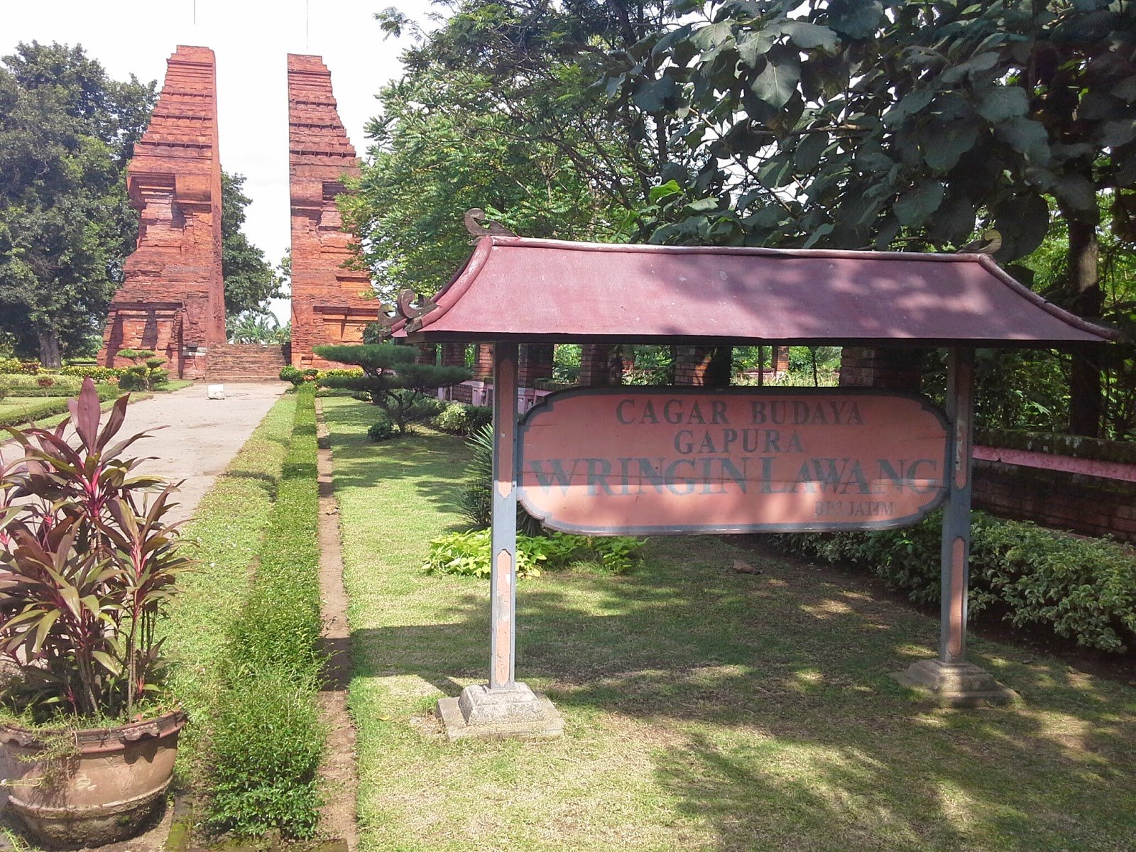 Gapura Wringin Lawang adalah bagian dari bukti sejarah yang masih bisa kita temui dan memiliki struktur yang hampir sama dengan aslinya dikarenakan pemugaran yang telah dilakukan. Pengambilan nama Wringin Lawang disebabkan para pendahulu yang menemukan bangunan ini diapit oleh dua pohon beringan sehingga masyarakat sekitar menyebutnya Gapura Wringin Lawang. Gapura Wringin Lawang tergolong dalam tipe candi bentar dimana bentuk bangunan yang tidak memiliki atap.